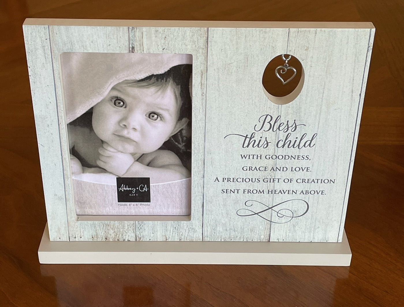 {"id":7425053818947,"title":"BLESS THIS CHILD STANDING FRME","handle":"bless-this-child-standing-frme","description":"Frame crafted of MDF, featuring a pewter finish heart charm in cutout.\u003cbr\u003eBlack text reads: \"Bless this child with goodness, grace and love. A precious gift of creation sent from Heaven above.\"\u003cbr\u003eStands\u003cbr\u003eFrame size 7.5\" x 9.5\"\u003cbr\u003eHolds 4\" x 6\" photo\u003cbr\u003eComes with a box","published_at":"2025-05-23T11:48:38","created_at":"2025-05-23T11:48:38","vendor":"Abbey Press and CA Gifts","type":"BAPTISM","tags":["Type_Photo Album\/Frame"],"price":2899,"price_min":2899,"price_max":2899,"price_varies":false,"compare_at_price":null,"compare_at_price_min":0,"compare_at_price_max":0,"compare_at_price_varies":true,"all_variant_ids":[42316276531267],"variants":[{"id":42316276531267,"product_id":7425053818947,"product_handle":"bless-this-child-standing-frme","title":"Default Title","option1":"Default Title","option2":null,"option3":null,"sku":"975-0669","requires_shipping":true,"taxable":true,"featured_image":null,"image_id":null,"available":true,"name":"BLESS THIS CHILD STANDING FRME - Default Title","options":["Default Title"],"price":2899,"weight":470,"compare_at_price":null,"inventory_quantity":2,"inventory_management":"shopify","inventory_policy":"deny","inventory_in_cart":0,"inventory_remaining":2,"incoming":false,"next_incoming_date":null,"taxable":true,"barcode":null}],"available":true,"images":["\/\/marytowngiftshop.com\/cdn\/shop\/files\/975-06691.jpg?v=1748026404","\/\/marytowngiftshop.com\/cdn\/shop\/files\/975-06692.jpg?v=1748026404"],"featured_image":"\/\/marytowngiftshop.com\/cdn\/shop\/files\/975-06691.jpg?v=1748026404","options":["Title"],"url":"\/products\/bless-this-child-standing-frme"}