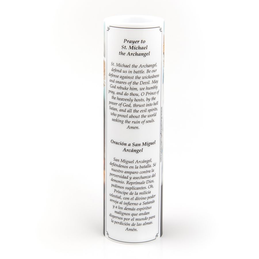 {"id":6633906700355,"title":"LED ST MICHAEL CANDLE","handle":"led-st-michael-candle","description":"St. Michael the Archangel LED Candle\u003cbr\u003e\u003cbr\u003eThe front has a picture of him holding a sword and stepping on the devil. The other side has a Prayer to St. Michael the Archangel. \u003cbr\u003e\u003cbr\u003eSt. Michael the Archangel, defend us in battle. Be our defense against the wickedness and snares of the Devil. May God rebuke him, we humbly pray, and do thou, O Prince of the heavenly hosts, by the power of God, thrust into hell Satan, and all the evil spirits, who prowl about the world seeking the ruin of souls. Amen.\u003cbr\u003e\u003cbr\u003eBelow that the prayer is in Spanish. \u003cbr\u003e\u003cbr\u003eAbout 8.25\" tall. Operates with 2 AA batteries (Not Included). Lasts over 180 hours of continuous operation. It has a six hour timer and an on and off switch. It flickers like a real candle. It is flameless, LED, and safe to use anywhere.","published_at":"2021-12-21T16:27:08","created_at":"2021-12-21T16:27:08","vendor":"Abundant Blessings","type":"Candles and Incense","tags":["Candles and Incense","Style_LED Candle","Type_Candle"],"price":1699,"price_min":1699,"price_max":1699,"price_varies":false,"compare_at_price":null,"compare_at_price_min":0,"compare_at_price_max":0,"compare_at_price_varies":true,"all_variant_ids":[39687976878147],"variants":[{"id":39687976878147,"product_id":6633906700355,"product_handle":"led-st-michael-candle","title":"Default Title","option1":"Default Title","option2":null,"option3":null,"sku":"910-0069","requires_shipping":true,"taxable":true,"featured_image":null,"image_id":null,"available":true,"name":"LED ST MICHAEL CANDLE - Default Title","options":["Default Title"],"price":1699,"weight":170,"compare_at_price":null,"inventory_quantity":12,"inventory_management":"shopify","inventory_policy":"deny","inventory_in_cart":0,"inventory_remaining":12,"incoming":false,"next_incoming_date":null,"taxable":true,"barcode":""}],"available":true,"images":["\/\/marytowngiftshop.com\/cdn\/shop\/products\/910-0069.jpg?v=1640126292","\/\/marytowngiftshop.com\/cdn\/shop\/files\/c-8025.jpg?v=1746637484","\/\/marytowngiftshop.com\/cdn\/shop\/files\/c-8025-a.jpg?v=1746637526"],"featured_image":"\/\/marytowngiftshop.com\/cdn\/shop\/products\/910-0069.jpg?v=1640126292","options":["Title"],"url":"\/products\/led-st-michael-candle"}