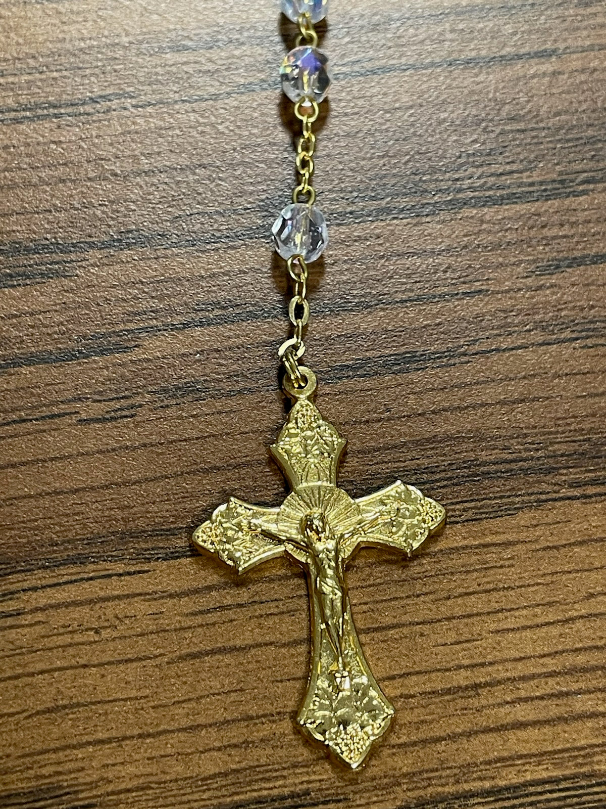 CRYSTAL BEAD GOLD COMM ROSARY