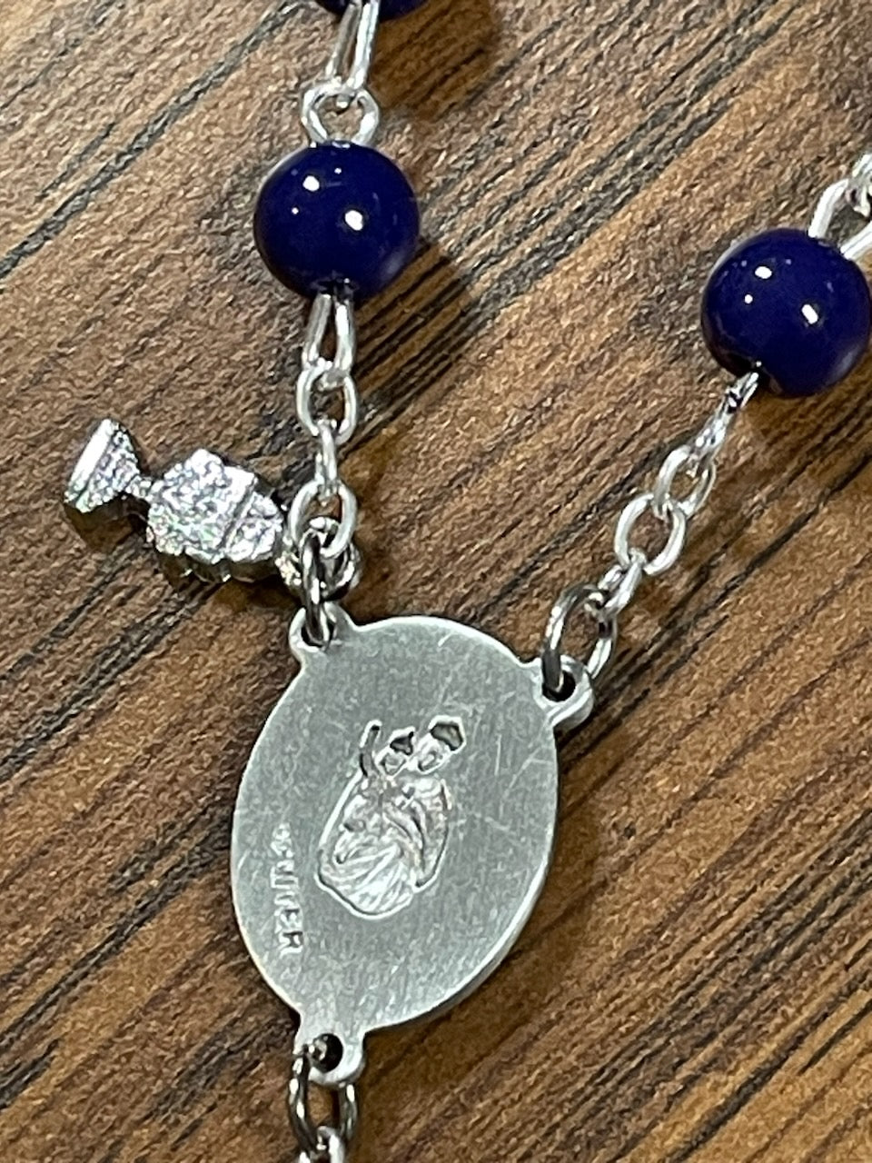 {"id":7373411811395,"title":"NAVY GLASS COMM ROS W\/ CHALICE","handle":"navy-glass-comm-ros-w-chalice","description":"\u003cp\u003e6MM Navy blue glass First Communion rosary has a rhodium centerpiece that shows the Sacred Heart of Jesus on one side and Our Lady of Mount Carmel on the other side. There is a tiny rhodium chalice attached to it.\u003c\/p\u003e","published_at":"2025-02-13T12:33:07","created_at":"2025-02-13T12:33:07","vendor":"McVan Inc. \u0026 Piccolo Italia","type":"COMMUNION","tags":["Color_Blue","COMMUNION","Communion and Confirmation","Style_Boy","Type_Five Decade"],"price":4799,"price_min":4799,"price_max":4799,"price_varies":false,"compare_at_price":null,"compare_at_price_min":0,"compare_at_price_max":0,"compare_at_price_varies":true,"all_variant_ids":[42105794428995],"variants":[{"id":42105794428995,"product_id":7373411811395,"product_handle":"navy-glass-comm-ros-w-chalice","title":"Default Title","option1":"Default Title","option2":null,"option3":null,"sku":"990-0094","requires_shipping":true,"taxable":true,"featured_image":null,"image_id":null,"available":true,"name":"NAVY GLASS COMM ROS W\/ CHALICE - Default Title","options":["Default Title"],"price":4799,"weight":110,"compare_at_price":null,"inventory_quantity":5,"inventory_management":"shopify","inventory_policy":"deny","inventory_in_cart":0,"inventory_remaining":5,"incoming":false,"next_incoming_date":null,"taxable":true,"barcode":null}],"available":true,"images":["\/\/marytowngiftshop.com\/cdn\/shop\/files\/990-00943.jpg?v=1740763785","\/\/marytowngiftshop.com\/cdn\/shop\/files\/990-00944.jpg?v=1740763785","\/\/marytowngiftshop.com\/cdn\/shop\/files\/990-00942.jpg?v=1740763785","\/\/marytowngiftshop.com\/cdn\/shop\/files\/990-00941.jpg?v=1740763785"],"featured_image":"\/\/marytowngiftshop.com\/cdn\/shop\/files\/990-00943.jpg?v=1740763785","options":["Title"],"url":"\/products\/navy-glass-comm-ros-w-chalice"}