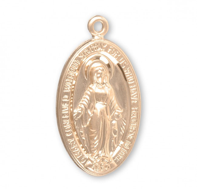 {"id":6727204962371,"title":"16K GP OVAL MIRACULOUS 18\"","handle":"16k-gp-oval-miraculous-18","description":"16kt Gold Over Sterling Oval Miraculous Medal Necklace.\u003cbr\u003eBlessed Mother Mary with rays coming out of her extended hands, crushing a serpent under her feet.\u003cbr\u003eOval shaped double sided pendant.\u003cbr\u003e16kt Gold over solid .925 sterling silver.\u003cbr\u003eMedal is die struck.\u003cbr\u003eHand polished and engraved by New England Silversmiths.\u003cbr\u003eDimensions: 0.9\" x 0.5\" (24mm x 13mm)\u003cbr\u003eWeight of medal: 2.6 Grams.\u003cbr\u003e18\" Genuine gold plated curb chain.\u003cbr\u003eMade in USA.\u003cbr\u003eDeluxe velvet gift box.","published_at":"2022-09-01T17:22:53","created_at":"2022-09-01T17:22:53","vendor":"HMH\/Regina Manufacturing","type":"MEDALS","tags":["Chain Size_18\"","Material_Gold over Sterling","Type_Miraculous Medal"],"price":6400,"price_min":6400,"price_max":6400,"price_varies":false,"compare_at_price":null,"compare_at_price_min":0,"compare_at_price_max":0,"compare_at_price_varies":true,"all_variant_ids":[40161465303107],"variants":[{"id":40161465303107,"product_id":6727204962371,"product_handle":"16k-gp-oval-miraculous-18","title":"Default Title","option1":"Default Title","option2":null,"option3":null,"sku":"931-0113","requires_shipping":true,"taxable":true,"featured_image":null,"image_id":null,"available":true,"name":"16K GP OVAL MIRACULOUS 18\" - Default Title","options":["Default Title"],"price":6400,"weight":60,"compare_at_price":null,"inventory_quantity":2,"inventory_management":"shopify","inventory_policy":"deny","inventory_in_cart":0,"inventory_remaining":2,"incoming":false,"next_incoming_date":null,"taxable":true,"barcode":null}],"available":true,"images":["\/\/marytowngiftshop.com\/cdn\/shop\/files\/GS110718_1.jpg?v=1746470864","\/\/marytowngiftshop.com\/cdn\/shop\/files\/GS1107X.jpg?v=1746470958","\/\/marytowngiftshop.com\/cdn\/shop\/files\/GS1107.jpg?v=1746470985"],"featured_image":"\/\/marytowngiftshop.com\/cdn\/shop\/files\/GS110718_1.jpg?v=1746470864","options":["Title"],"url":"\/products\/16k-gp-oval-miraculous-18"}