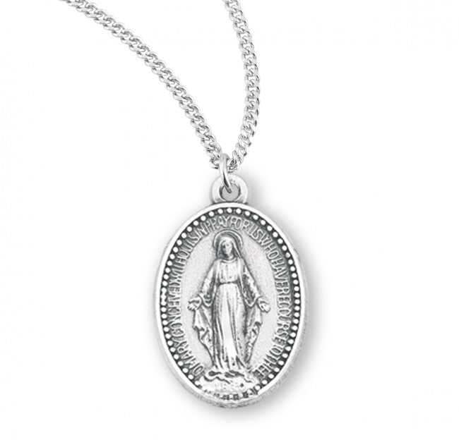 {"id":6727205617731,"title":"SS BEADED EDGE MIRACULOUS 18\"","handle":"ss-beaded-edge-miraculous-18","description":"Sterling Silver Beaded Edge Miraculous Medal Necklace.\u003cbr\u003eBlessed Mother Mary with rays coming out of her extended hands, crushing a serpent under her feet.\u003cbr\u003eOval shaped double sided pendant with beaded edge.\u003cbr\u003eSolid .925 sterling silver.\u003cbr\u003eMedal is die struck.\u003cbr\u003eHand polished and engraved by New England Silversmiths.\u003cbr\u003eDimensions: 0.9\" x 0.5\" (22mm x 13mm)\u003cbr\u003eWeight of medal: 2.6 Grams.\u003cbr\u003e18\" Genuine rhodium plated curb chain.\u003cbr\u003eMade in USA.\u003cbr\u003eDeluxe velvet gift box.","published_at":"2022-09-01T17:23:30","created_at":"2022-09-01T17:23:30","vendor":"HMH\/Regina Manufacturing","type":"MEDALS","tags":["Chain Size_18\"","Material_Sterling Silver","Type_Miraculous Medal"],"price":5200,"price_min":5200,"price_max":5200,"price_varies":false,"compare_at_price":null,"compare_at_price_min":0,"compare_at_price_max":0,"compare_at_price_varies":true,"all_variant_ids":[40161465958467],"variants":[{"id":40161465958467,"product_id":6727205617731,"product_handle":"ss-beaded-edge-miraculous-18","title":"Default Title","option1":"Default Title","option2":null,"option3":null,"sku":"931-0133","requires_shipping":true,"taxable":true,"featured_image":null,"image_id":null,"available":true,"name":"SS BEADED EDGE MIRACULOUS 18\" - Default Title","options":["Default Title"],"price":5200,"weight":60,"compare_at_price":null,"inventory_quantity":1,"inventory_management":"shopify","inventory_policy":"deny","inventory_in_cart":0,"inventory_remaining":1,"incoming":false,"next_incoming_date":null,"taxable":true,"barcode":null}],"available":true,"images":["\/\/marytowngiftshop.com\/cdn\/shop\/files\/S315218_1.jpg?v=1746477839","\/\/marytowngiftshop.com\/cdn\/shop\/files\/S3152X.jpg?v=1746477869","\/\/marytowngiftshop.com\/cdn\/shop\/files\/S3152.jpg?v=1746477906"],"featured_image":"\/\/marytowngiftshop.com\/cdn\/shop\/files\/S315218_1.jpg?v=1746477839","options":["Title"],"url":"\/products\/ss-beaded-edge-miraculous-18"}