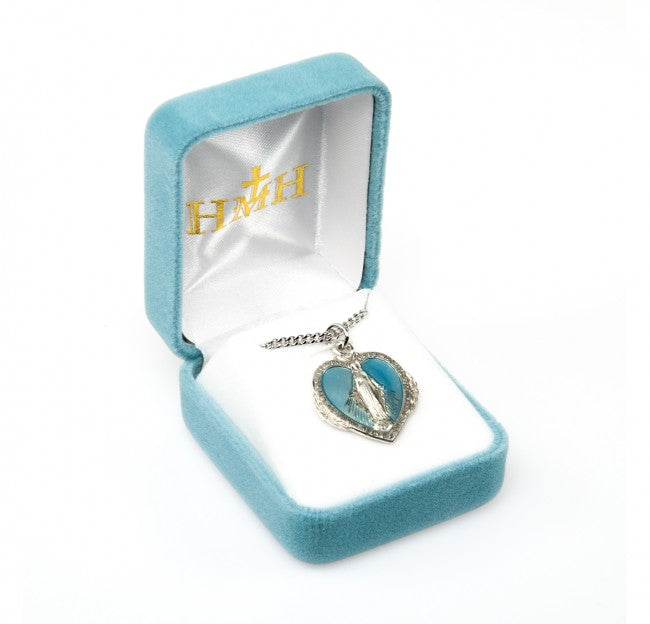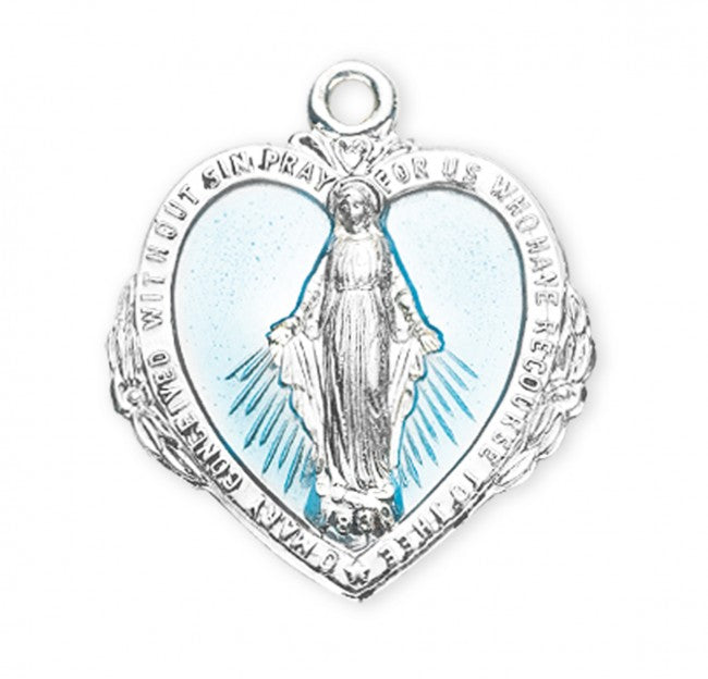 {"id":6727206207555,"title":"SS MIRACULOUS BLUE EPOXY 20\"","handle":"ss-miraculous-blue-epoxy-20","description":"Sterling Heart Miraculous Medal with Blue Epoxy Necklace.\u003cbr\u003eBlessed Mother Mary with rays coming out of her extended hands, crushing a serpent under her feet.\u003cbr\u003eBlue enameled heart shaped double sided pendant.\u003cbr\u003eSolid .925 sterling silver.\u003cbr\u003eMedal is die struck.\u003cbr\u003eHand polished and engraved by New England Silversmiths.\u003cbr\u003eDimensions: 1.0\" x 0.9\" (25mm x 22mm)\u003cbr\u003eWeight of medal: 3.9 Grams.\u003cbr\u003e20\" Genuine rhodium plated curb chain.\u003cbr\u003eMade in USA.\u003cbr\u003eDeluxe velvet gift box.","published_at":"2022-09-01T17:23:47","created_at":"2022-09-01T17:23:47","vendor":"HMH\/Regina Manufacturing","type":"MEDALS","tags":["Chain Size_20\"","Material_Sterling Silver","Type_Miraculous Medal"],"price":6150,"price_min":6150,"price_max":6150,"price_varies":false,"compare_at_price":null,"compare_at_price_min":0,"compare_at_price_max":0,"compare_at_price_varies":true,"all_variant_ids":[40161467957315],"variants":[{"id":40161467957315,"product_id":6727206207555,"product_handle":"ss-miraculous-blue-epoxy-20","title":"Default Title","option1":"Default Title","option2":null,"option3":null,"sku":"931-0099","requires_shipping":true,"taxable":true,"featured_image":null,"image_id":null,"available":true,"name":"SS MIRACULOUS BLUE EPOXY 20\" - Default Title","options":["Default Title"],"price":6150,"weight":60,"compare_at_price":null,"inventory_quantity":1,"inventory_management":"shopify","inventory_policy":"deny","inventory_in_cart":0,"inventory_remaining":1,"incoming":false,"next_incoming_date":null,"taxable":true,"barcode":null}],"available":true,"images":["\/\/marytowngiftshop.com\/cdn\/shop\/files\/S3163BLX.jpg?v=1746562174","\/\/marytowngiftshop.com\/cdn\/shop\/files\/S3163BL20_1.jpg?v=1746562174","\/\/marytowngiftshop.com\/cdn\/shop\/files\/S3163BL.jpg?v=1746562130"],"featured_image":"\/\/marytowngiftshop.com\/cdn\/shop\/files\/S3163BLX.jpg?v=1746562174","options":["Title"],"url":"\/products\/ss-miraculous-blue-epoxy-20"}