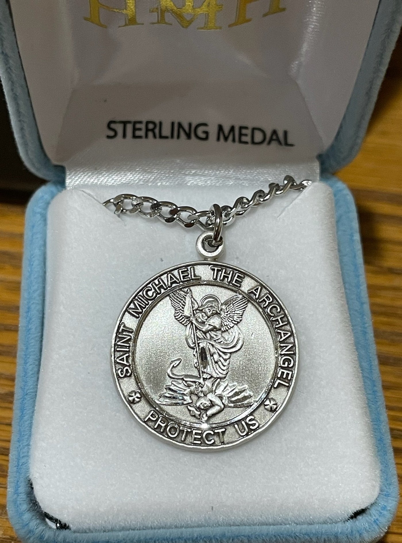 {"id":6727207256131,"title":"SS ROUND ST MICHAEL 24\"","handle":"ss-round-st-michael-24","description":"Sterling Silver Round St. Michael Medal Necklace.\u003cbr\u003eIt says, \"Saint Michael The Archangel Protect Us.\"\u003cbr\u003eHas a 24\" chain.","published_at":"2022-09-01T17:24:20","created_at":"2022-09-01T17:24:20","vendor":"HMH\/Regina Manufacturing","type":"MEDALS","tags":["Chain Size_24\"","Material_Sterling Silver","Type_Saint Medals"],"price":7200,"price_min":7200,"price_max":7200,"price_varies":false,"compare_at_price":null,"compare_at_price_min":0,"compare_at_price_max":0,"compare_at_price_varies":true,"all_variant_ids":[40161469333571],"variants":[{"id":40161469333571,"product_id":6727207256131,"product_handle":"ss-round-st-michael-24","title":"Default Title","option1":"Default Title","option2":null,"option3":null,"sku":"945-1316","requires_shipping":true,"taxable":true,"featured_image":null,"image_id":null,"available":true,"name":"SS ROUND ST MICHAEL 24\" - Default Title","options":["Default Title"],"price":7200,"weight":70,"compare_at_price":null,"inventory_quantity":2,"inventory_management":"shopify","inventory_policy":"deny","inventory_in_cart":0,"inventory_remaining":2,"incoming":false,"next_incoming_date":null,"taxable":true,"barcode":null}],"available":true,"images":["\/\/marytowngiftshop.com\/cdn\/shop\/files\/945-1316.jpg?v=1747423867"],"featured_image":"\/\/marytowngiftshop.com\/cdn\/shop\/files\/945-1316.jpg?v=1747423867","options":["Title"],"url":"\/products\/ss-round-st-michael-24"}