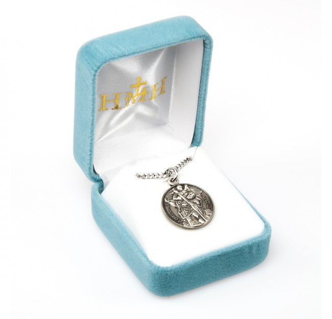 {"id":6727207813187,"title":"SS ST CHRISTOPHER ROUND 18\"","handle":"ss-st-christopher-round-18","description":"Saint Christopher round medal-pendant.\u003cbr\u003eSolid .925 sterling silver.\u003cbr\u003eDetail depicts him carrying the Child Jesus on his shoulder.\u003cbr\u003eSaint Christopher is the Patron Saint of motorists and travelers.\u003cbr\u003eMedal is die struck.\u003cbr\u003eHand polished and engraved by New England Silversmiths.\u003cbr\u003eDimensions: 0.9\" x 0.7\" (23mm x 19mm)\u003cbr\u003eWeight of medal: 3.8 Grams.\u003cbr\u003e18\" Genuine rhodium plated curb chain.\u003cbr\u003eMade in USA.\u003cbr\u003eDeluxe velvet gift box.","published_at":"2022-09-01T17:24:39","created_at":"2022-09-01T17:24:39","vendor":"HMH\/Regina Manufacturing","type":"MEDALS","tags":["Chain Size_18\"","Material_Sterling Silver","Type_Saint Medals"],"price":6600,"price_min":6600,"price_max":6600,"price_varies":false,"compare_at_price":null,"compare_at_price_min":0,"compare_at_price_max":0,"compare_at_price_varies":true,"all_variant_ids":[40161469890627],"variants":[{"id":40161469890627,"product_id":6727207813187,"product_handle":"ss-st-christopher-round-18","title":"Default Title","option1":"Default Title","option2":null,"option3":null,"sku":"945-1328","requires_shipping":true,"taxable":true,"featured_image":null,"image_id":null,"available":true,"name":"SS ST CHRISTOPHER ROUND 18\" - Default Title","options":["Default Title"],"price":6600,"weight":50,"compare_at_price":null,"inventory_quantity":2,"inventory_management":"shopify","inventory_policy":"deny","inventory_in_cart":0,"inventory_remaining":2,"incoming":false,"next_incoming_date":null,"taxable":true,"barcode":null}],"available":true,"images":["\/\/marytowngiftshop.com\/cdn\/shop\/files\/S1336_1.jpg?v=1746818419","\/\/marytowngiftshop.com\/cdn\/shop\/files\/S1336X.jpg?v=1746818444","\/\/marytowngiftshop.com\/cdn\/shop\/files\/S133618.jpg?v=1746818469"],"featured_image":"\/\/marytowngiftshop.com\/cdn\/shop\/files\/S1336_1.jpg?v=1746818419","options":["Title"],"url":"\/products\/ss-st-christopher-round-18"}