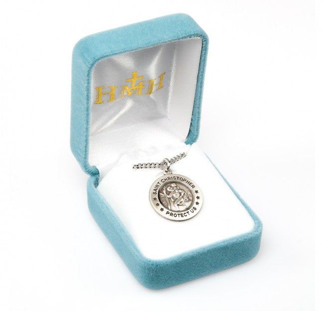{"id":6727207845955,"title":"SS ST CHRISTOPHER ROUND 18\"","handle":"ss-st-christopher-round-19","description":"Saint Christopher round medal-pendant.\u003cbr\u003eSolid .925 sterling silver.\u003cbr\u003eDetail depicts him carrying the Child Jesus on his shoulder.\u003cbr\u003eSaint Christopher is the Patron Saint of motorists and travelers.\u003cbr\u003eMedal is die struck.\u003cbr\u003eHand polished and engraved by New England Silversmiths.\u003cbr\u003eDimensions: 0.9\" x 0.8\" (22mm x 20mm)\u003cbr\u003eWeight of medal: 3.4 Grams.\u003cbr\u003e18\" Genuine rhodium plated curb chain.\u003cbr\u003eMade in USA.\u003cbr\u003eDeluxe velvet gift box.","published_at":"2022-09-01T17:24:41","created_at":"2022-09-01T17:24:41","vendor":"HMH\/Regina Manufacturing","type":"MEDALS","tags":["Chain Size_18\"","Material_Sterling Silver","Type_Saint Medals"],"price":6450,"price_min":6450,"price_max":6450,"price_varies":false,"compare_at_price":null,"compare_at_price_min":0,"compare_at_price_max":0,"compare_at_price_varies":true,"all_variant_ids":[40161469923395],"variants":[{"id":40161469923395,"product_id":6727207845955,"product_handle":"ss-st-christopher-round-19","title":"Default Title","option1":"Default Title","option2":null,"option3":null,"sku":"945-1330","requires_shipping":true,"taxable":true,"featured_image":null,"image_id":null,"available":true,"name":"SS ST CHRISTOPHER ROUND 18\" - Default Title","options":["Default Title"],"price":6450,"weight":50,"compare_at_price":null,"inventory_quantity":2,"inventory_management":"shopify","inventory_policy":"deny","inventory_in_cart":0,"inventory_remaining":2,"incoming":false,"next_incoming_date":null,"taxable":true,"barcode":null}],"available":true,"images":["\/\/marytowngiftshop.com\/cdn\/shop\/files\/S1595_1.jpg?v=1746818575","\/\/marytowngiftshop.com\/cdn\/shop\/files\/S1595X.jpg?v=1746818726","\/\/marytowngiftshop.com\/cdn\/shop\/files\/S159518.jpg?v=1746818747"],"featured_image":"\/\/marytowngiftshop.com\/cdn\/shop\/files\/S1595_1.jpg?v=1746818575","options":["Title"],"url":"\/products\/ss-st-christopher-round-19"}