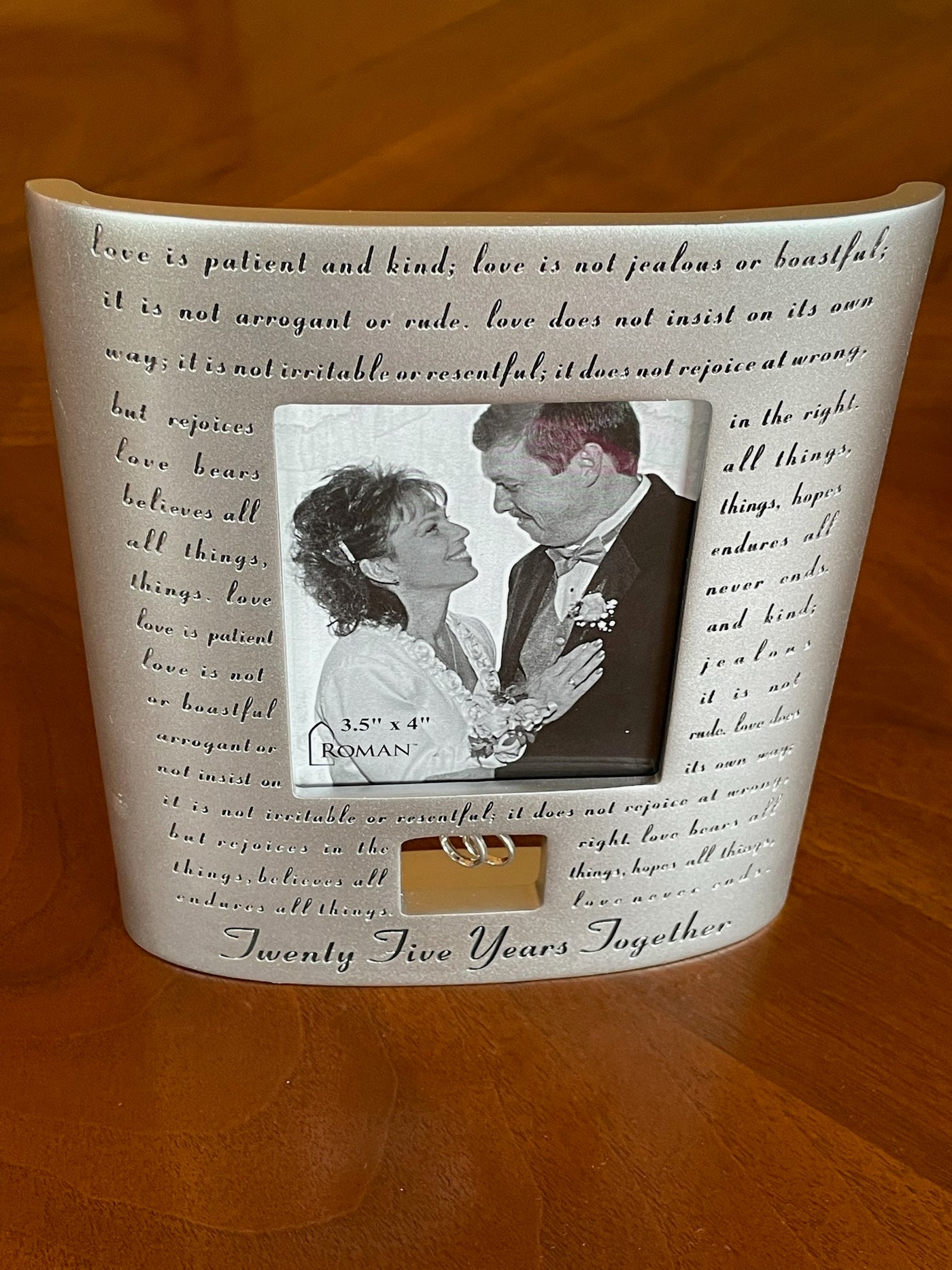 {"id":7431944667203,"title":"25TH ANNIVERSARY FRAME RESIN\/S","handle":"25th-anniversary-frame-resin-s","description":"\u003cp\u003eSilver frame is a Resin\/stone mix. It says, \"Twenty Five Years Together.\" There is a cut out space with two rings hanging. It holds a 3.5\" X 4\" picture. There are sentences about love on the frame.\u003c\/p\u003e","published_at":"2025-06-06T13:57:14","created_at":"2025-06-06T13:57:14","vendor":"Roman, Inc.","type":"WEDDING","tags":["Home Goods","Style_Marriage","Type_Photo Album\/Frame","Wedding"],"price":3399,"price_min":3399,"price_max":3399,"price_varies":false,"compare_at_price":null,"compare_at_price_min":0,"compare_at_price_max":0,"compare_at_price_varies":true,"all_variant_ids":[42348363382851],"variants":[{"id":42348363382851,"product_id":7431944667203,"product_handle":"25th-anniversary-frame-resin-s","title":"Default Title","option1":"Default Title","option2":null,"option3":null,"sku":"944-0028","requires_shipping":true,"taxable":true,"featured_image":null,"image_id":null,"available":true,"name":"25TH ANNIVERSARY FRAME RESIN\/S - Default Title","options":["Default Title"],"price":3399,"weight":490,"compare_at_price":null,"inventory_quantity":4,"inventory_management":"shopify","inventory_policy":"deny","inventory_in_cart":0,"inventory_remaining":4,"incoming":false,"next_incoming_date":null,"taxable":true,"barcode":null}],"available":true,"images":["\/\/marytowngiftshop.com\/cdn\/shop\/files\/944-00281.jpg?v=1749236943","\/\/marytowngiftshop.com\/cdn\/shop\/files\/944-00282.jpg?v=1749236943","\/\/marytowngiftshop.com\/cdn\/shop\/files\/944-00283.jpg?v=1749236943"],"featured_image":"\/\/marytowngiftshop.com\/cdn\/shop\/files\/944-00281.jpg?v=1749236943","options":["Title"],"url":"\/products\/25th-anniversary-frame-resin-s"}