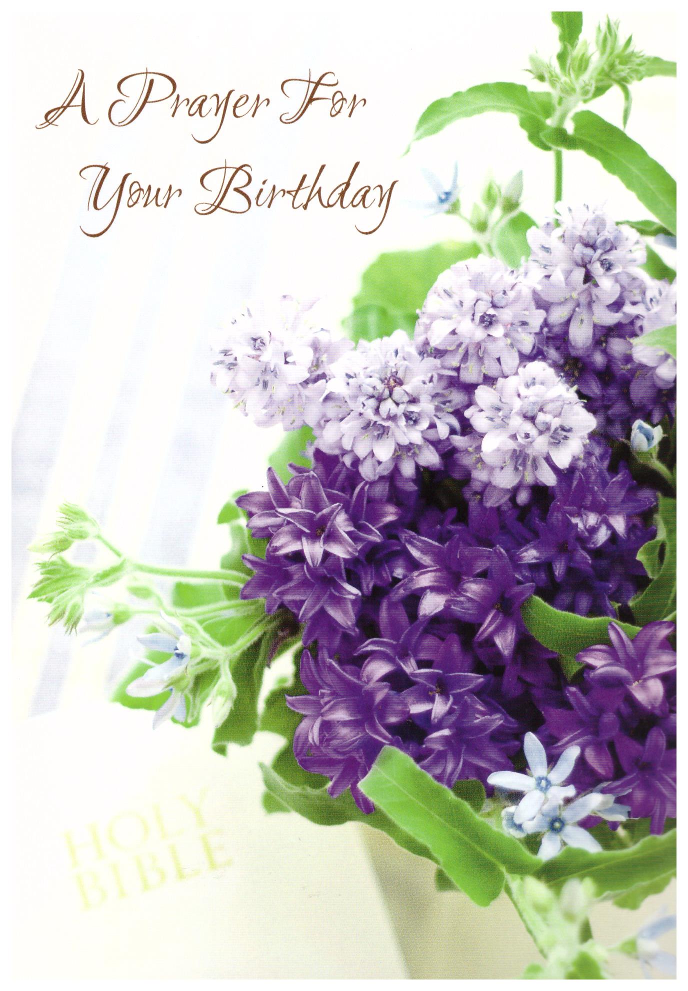The fourth type of card says, "A Prayer For Your Birthday" on the cover. The inside says, "May God bless your birthday and give you the desires of your heart in the coming year." The scripture says, "Grace be to you and peace from God the Father, and from our Lord Jesus Christ" (Galatians 1:3).
