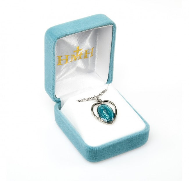 {"id":6727206010947,"title":"SS HEART MIRACULOUS BL ENAM 18","handle":"ss-heart-miraculous-bl-enam-18","description":"Sterling silver blue enameled pierced Miraculous Medal heart Necklace.\u003cbr\u003e\u003cbr\u003eBlessed Mother Mary with rays coming out of her extended hands, crushing a serpent under her feet.\u003cbr\u003eBlue enameled oval shaped double sided pendant set in a pierced heart.\u003cbr\u003eSolid .925 sterling silver.\u003cbr\u003eMedal is die struck.\u003cbr\u003eHand polished and engraved by New England Silversmiths.\u003cbr\u003eDimensions: 0.8\" x 0.7\"(21mm x 18mm)\u003cbr\u003eWeight of medal: 2.6 Grams.\u003cbr\u003e18\" Genuine rhodium plated curb chain.\u003cbr\u003eMade in USA.\u003cbr\u003eDeluxe velvet gift box.","published_at":"2022-09-01T17:23:40","created_at":"2022-09-01T17:23:40","vendor":"HMH\/Regina Manufacturing","type":"MEDALS","tags":["Chain Size_18\"","Material_Sterling Silver","Type_Miraculous Medal"],"price":6100,"price_min":6100,"price_max":6100,"price_varies":false,"compare_at_price":null,"compare_at_price_min":0,"compare_at_price_max":0,"compare_at_price_varies":true,"all_variant_ids":[40161467662403],"variants":[{"id":40161467662403,"product_id":6727206010947,"product_handle":"ss-heart-miraculous-bl-enam-18","title":"Default Title","option1":"Default Title","option2":null,"option3":null,"sku":"931-0108","requires_shipping":true,"taxable":true,"featured_image":null,"image_id":null,"available":true,"name":"SS HEART MIRACULOUS BL ENAM 18 - Default Title","options":["Default Title"],"price":6100,"weight":60,"compare_at_price":null,"inventory_quantity":1,"inventory_management":"shopify","inventory_policy":"deny","inventory_in_cart":0,"inventory_remaining":1,"incoming":false,"next_incoming_date":null,"taxable":true,"barcode":null}],"available":true,"images":["\/\/marytowngiftshop.com\/cdn\/shop\/files\/S3166BL18_1.jpg?v=1746558141","\/\/marytowngiftshop.com\/cdn\/shop\/files\/S3166BLX.jpg?v=1746558172","\/\/marytowngiftshop.com\/cdn\/shop\/files\/S3166BL.jpg?v=1746558204"],"featured_image":"\/\/marytowngiftshop.com\/cdn\/shop\/files\/S3166BL18_1.jpg?v=1746558141","options":["Title"],"url":"\/products\/ss-heart-miraculous-bl-enam-18"}
