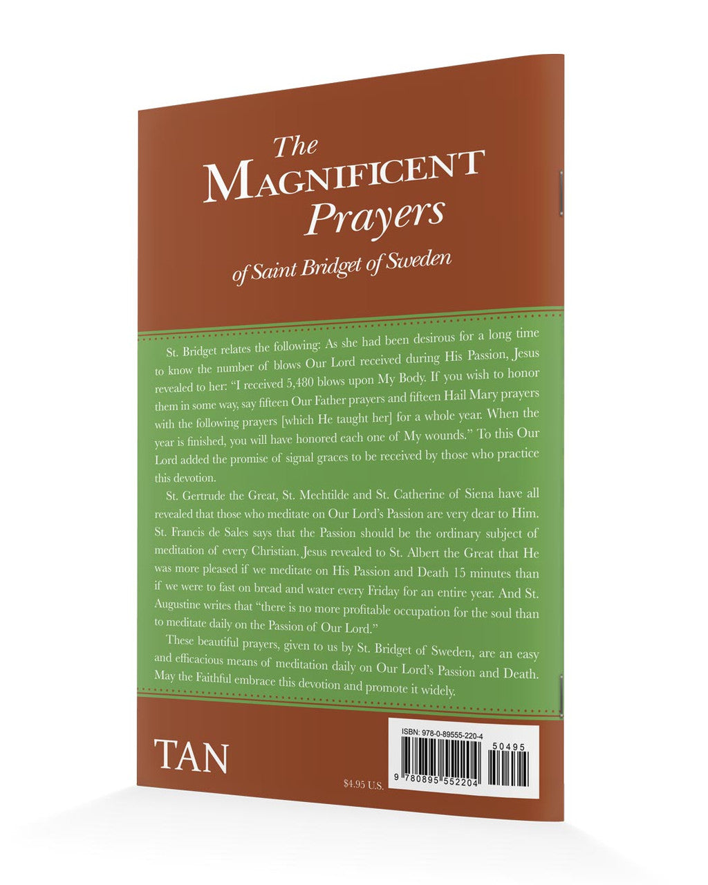{"id":41985015827,"title":"THE MAGNIFICENT PRAYERS","handle":"the-magnificent-prayers","description":"\u003cb\u003eThe Magnificent Prayers\u003cbr\u003eof Saint Bridget of Sweden\u003cbr\u003eBased on The Passion and Death of Christ\u003c\/b\u003e\u003cbr\u003eTaken from The Revelations of Saint Bridget\u003cbr\u003e\u003cbr\u003eSaint Bridget of Sweden was one of the most privileged mystics in the history of the Church. Born to a wealthy family, she was given in marriage to a pious and good-hearted nobleman, with whom she raised eight children, including the future Saint Catherine of Sweden. When her husband died, Bridget founded an order of nuns, the Order of the Most Holy Savior, more commonly called the Bridgettines. She labored until her death to spread her order and boost morality and devotion in the decadent 14th-century Church. She also labored to bring the papacy back to Rome from Avignon. In all her efforts, she was wise, charitable, and outstanding in sanctity. \u003cbr\u003e\u003cbr\u003eDevout from a young age, Saint Bridget also received numerous visions of Our Lord and Our Lady, including intimate details of Our Lady's early life, the Holy Family in Nazareth, and the Passion, as well as prayers the famous 15 Prayers attributed to her, popular devotions in the late Middle Ages and our own era. \u003ci\u003eThe Magnificent Prayers of Saint Bridget of Sweden\u003c\/i\u003e collects these prayers and presents them for the modern devotee. \u003cbr\u003e\u003cbr\u003eDo not miss these stirring and vivid prayers from one of the greatest foundresses and mystics of the Church's history. Imbued throughout St. Bridget's life, and thus these prayers of hers, is the undeniable spirit of piety, devotion, and saintliness that characterized her earthly life—and by which she merited to become privy to sublime mysteries. Let, then, her insights penetrate you through the recitation of these meditative orations.","published_at":"2017-11-15T14:52:53","created_at":"2017-11-15T14:52:53","vendor":"TAN BOOKS\/ST. BENEDICT PRESS","type":"BOOK","tags":["Subject_Prayer","Type_Books","Wholesale-HIDE"],"price":795,"price_min":795,"price_max":795,"price_varies":false,"compare_at_price":null,"compare_at_price_min":0,"compare_at_price_max":0,"compare_at_price_varies":true,"all_variant_ids":[428170706963],"variants":[{"id":428170706963,"product_id":41985015827,"product_handle":"the-magnificent-prayers","title":"Default Title","option1":"Default Title","option2":null,"option3":null,"sku":"868-0029","requires_shipping":true,"taxable":true,"featured_image":null,"image_id":null,"available":true,"name":"THE MAGNIFICENT PRAYERS - Default Title","options":["Default Title"],"price":795,"weight":50,"compare_at_price":null,"inventory_quantity":17,"inventory_management":"shopify","inventory_policy":"deny","inventory_in_cart":0,"inventory_remaining":17,"incoming":false,"next_incoming_date":null,"taxable":true,"barcode":""}],"available":true,"images":["\/\/www.marytowngiftshop.com\/cdn\/shop\/files\/0813__38055.1683123632.jpg?v=1708015300","\/\/www.marytowngiftshop.com\/cdn\/shop\/files\/0813_3D_F__74001.1683123632.jpg?v=1708015339","\/\/www.marytowngiftshop.com\/cdn\/shop\/files\/0813_3D_B__18229.1683123615.jpg?v=1708015369"],"featured_image":"\/\/www.marytowngiftshop.com\/cdn\/shop\/files\/0813__38055.1683123632.jpg?v=1708015300","options":["Title"],"url":"\/products\/the-magnificent-prayers"}
