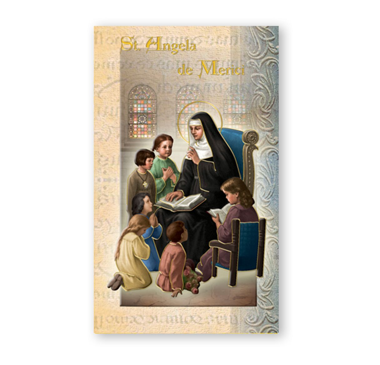 {"id":6687801868355,"title":"BIOGRAPHY OF ST ANGELA MERICI","handle":"biography-of-st-angela-merici","description":"Quality Catholic biography and prayer with exclusive 'Bonella' artwork. Our 'St. Angela' Biography Card includes two pages of information, the biography, the name meaning, subjects attributes, feast day, and a special prayer. This quality card stock biography is two pages, high-gloss, and includes our exclusive Italian 'Fratelli Bonella' colorful gold-stamped artwork of 'St. Angela', which makes this biography a beautiful work of art. Perfect for handouts at school, CCD, church, or prayer groups. \u003cbr\u003e\u003cbr\u003eDetails\u003cbr\u003eSaint Angela Merici 2 Page Folded Biography Card, Name Meaning, Patron Attributes, Prayer to Saint, Feast Day, Gold Stamped Italian Art 5.375\" X 3.25\"","published_at":"2022-05-10T09:56:00","created_at":"2022-05-10T09:56:00","vendor":"HIRTEN","type":"HOLY CARD","tags":["Holy Card","Subject_Saints","Type_Holy Card"],"price":150,"price_min":150,"price_max":150,"price_varies":false,"compare_at_price":null,"compare_at_price_min":0,"compare_at_price_max":0,"compare_at_price_varies":true,"all_variant_ids":[39941774770243],"variants":[{"id":39941774770243,"product_id":6687801868355,"product_handle":"biography-of-st-angela-merici","title":"Default Title","option1":"Default Title","option2":null,"option3":null,"sku":"884-0290","requires_shipping":true,"taxable":true,"featured_image":null,"image_id":null,"available":true,"name":"BIOGRAPHY OF ST ANGELA MERICI - Default Title","options":["Default Title"],"price":150,"weight":10,"compare_at_price":null,"inventory_quantity":75,"inventory_management":"shopify","inventory_policy":"deny","inventory_in_cart":0,"inventory_remaining":75,"incoming":false,"next_incoming_date":null,"taxable":true,"barcode":""}],"available":true,"images":["\/\/www.marytowngiftshop.com\/cdn\/shop\/products\/884-0290.jpg?v=1652196341"],"featured_image":"\/\/www.marytowngiftshop.com\/cdn\/shop\/products\/884-0290.jpg?v=1652196341","options":["Title"],"url":"\/products\/biography-of-st-angela-merici"}