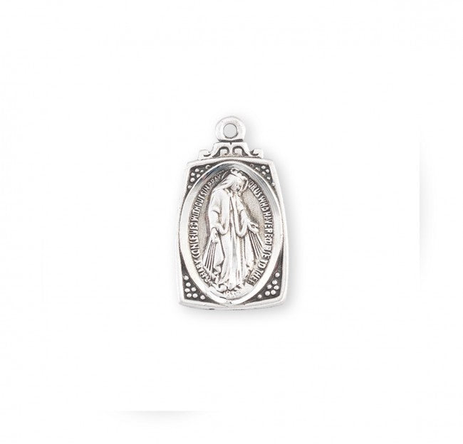 {"id":6727205486659,"title":"SS ART DECO MIRACULOUS 18\"","handle":"ss-art-deco-miraculous-18","description":"Sterling Silver Rectangle Miraculous Medal Necklace. \u003cbr\u003eBlessed Mother Mary with rays coming out of her extended hands, crushing a serpent under her feet.\u003cbr\u003e\"Art Deco\" style double sided pendant.\u003cbr\u003eMedal is die struck.\u003cbr\u003eHand polished and engraved by New England Silversmiths.\u003cbr\u003eDimensions: 0.9\" x 0.5\" (22mm x 13mm)\u003cbr\u003eWeight of medal: 2.6 Grams.\u003cbr\u003e18\" Genuine rhodium plated curb chain.\u003cbr\u003eMade in USA.\u003cbr\u003eDeluxe velvet gift box.","published_at":"2022-09-01T17:23:26","created_at":"2022-09-01T17:23:26","vendor":"HMH\/Regina Manufacturing","type":"MEDALS","tags":["Chain Size_18\"","Material_Sterling Silver","Type_Miraculous Medal"],"price":4300,"price_min":4300,"price_max":4300,"price_varies":false,"compare_at_price":null,"compare_at_price_min":0,"compare_at_price_max":0,"compare_at_price_varies":true,"all_variant_ids":[40161465827395],"variants":[{"id":40161465827395,"product_id":6727205486659,"product_handle":"ss-art-deco-miraculous-18","title":"Default Title","option1":"Default Title","option2":null,"option3":null,"sku":"931-0125","requires_shipping":true,"taxable":true,"featured_image":null,"image_id":null,"available":true,"name":"SS ART DECO MIRACULOUS 18\" - Default Title","options":["Default Title"],"price":4300,"weight":60,"compare_at_price":null,"inventory_quantity":1,"inventory_management":"shopify","inventory_policy":"deny","inventory_in_cart":0,"inventory_remaining":1,"incoming":false,"next_incoming_date":null,"taxable":true,"barcode":null}],"available":true,"images":["\/\/www.marytowngiftshop.com\/cdn\/shop\/files\/S318018_1.jpg?v=1746474072","\/\/www.marytowngiftshop.com\/cdn\/shop\/files\/S3180X.jpg?v=1746474130","\/\/www.marytowngiftshop.com\/cdn\/shop\/files\/S3180.jpg?v=1746474155"],"featured_image":"\/\/www.marytowngiftshop.com\/cdn\/shop\/files\/S318018_1.jpg?v=1746474072","options":["Title"],"url":"\/products\/ss-art-deco-miraculous-18"}