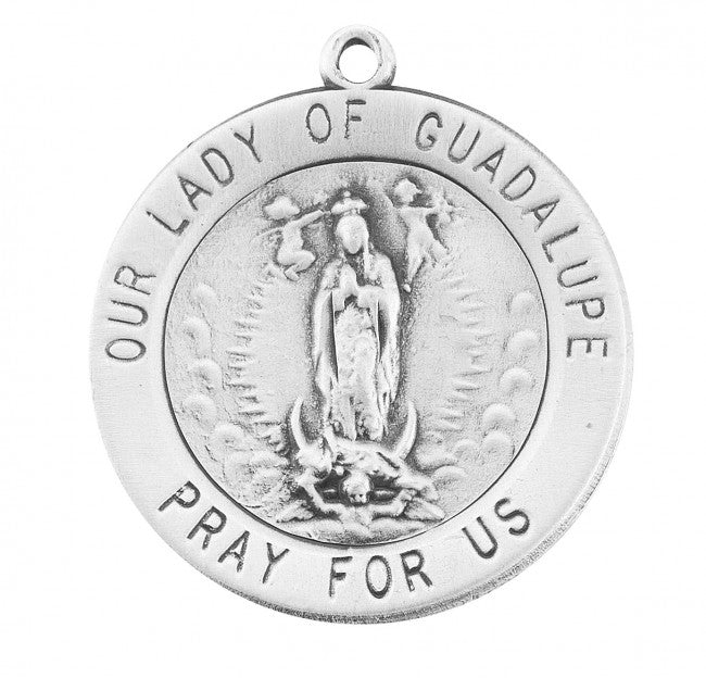 {"id":7173914984515,"title":"SS OL GUADALUPE 24\"","handle":"ss-ol-guadalupe-24","description":"Our Lady of Guadalupe medal-pendant.\u003cbr\u003eSolid .925 sterling silver.\u003cbr\u003eMedal is die struck.\u003cbr\u003eHand polished and engraved by New England Silversmiths.\u003cbr\u003eDimensions: 1.1\" x 1.0\" (28mm x 26mm)\u003cbr\u003eWeight of medal: 7.0 Grams.\u003cbr\u003e24\" Genuine rhodium plated endless curb chain.\u003cbr\u003eMade in USA.\u003cbr\u003eDeluxe velvet gift box.","published_at":"2024-05-20T13:36:08","created_at":"2024-05-20T13:36:08","vendor":"HMH\/Regina Manufacturing","type":"MEDALS","tags":["Chain Size_24\"","Material_Sterling Silver","Type_Our Lady of Guadalupe"],"price":8500,"price_min":8500,"price_max":8500,"price_varies":false,"compare_at_price":null,"compare_at_price_min":0,"compare_at_price_max":0,"compare_at_price_varies":true,"all_variant_ids":[41442839003203],"variants":[{"id":41442839003203,"product_id":7173914984515,"product_handle":"ss-ol-guadalupe-24","title":"Default Title","option1":"Default Title","option2":null,"option3":null,"sku":"945-1451","requires_shipping":true,"taxable":true,"featured_image":null,"image_id":null,"available":true,"name":"SS OL GUADALUPE 24\" - Default Title","options":["Default Title"],"price":8500,"weight":50,"compare_at_price":null,"inventory_quantity":2,"inventory_management":"shopify","inventory_policy":"deny","inventory_in_cart":0,"inventory_remaining":2,"incoming":false,"next_incoming_date":null,"taxable":true,"barcode":null}],"available":true,"images":["\/\/www.marytowngiftshop.com\/cdn\/shop\/files\/S365924_1.jpg?v=1745952919","\/\/www.marytowngiftshop.com\/cdn\/shop\/files\/S3659X.jpg?v=1745952940","\/\/www.marytowngiftshop.com\/cdn\/shop\/files\/S3659.jpg?v=1745952966"],"featured_image":"\/\/www.marytowngiftshop.com\/cdn\/shop\/files\/S365924_1.jpg?v=1745952919","options":["Title"],"url":"\/products\/ss-ol-guadalupe-24"}