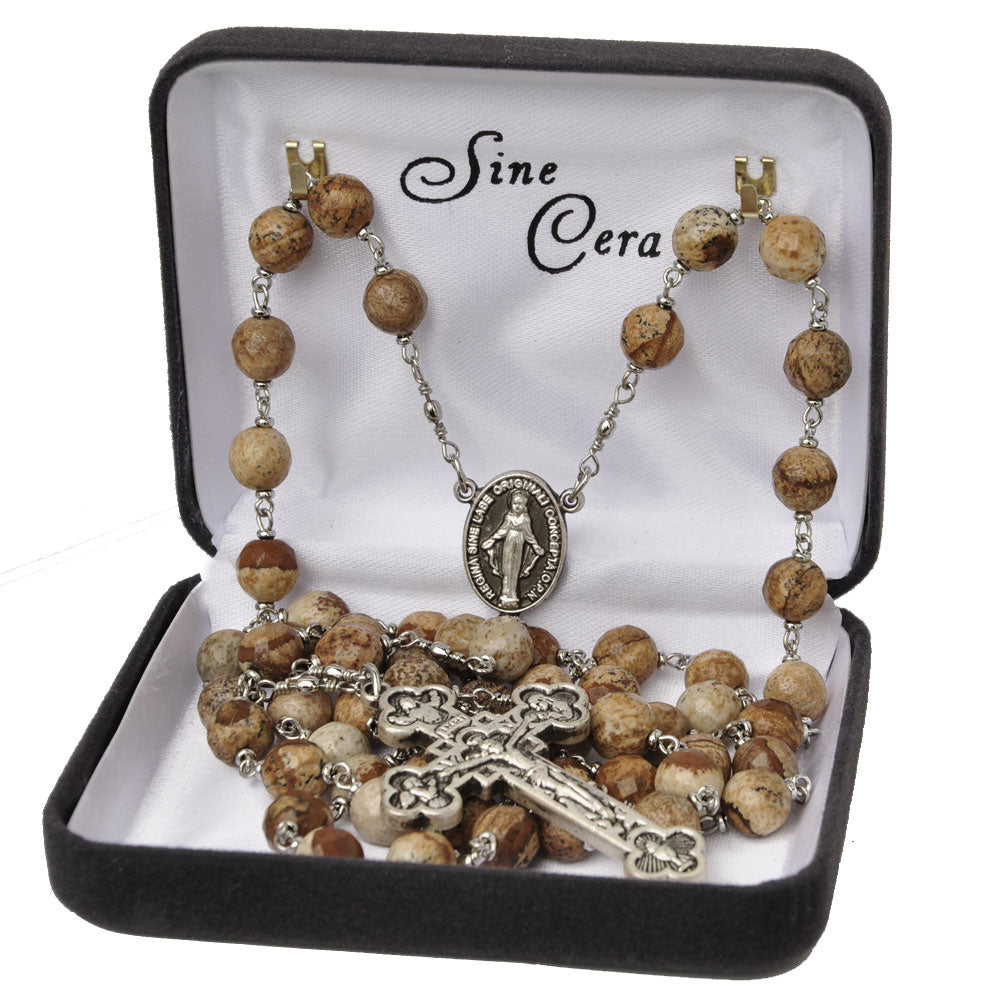 {"id":6782068555843,"title":"8MM PICTURE JASPER ROSARY","handle":"8mm-picture-jasper-rosary","description":"Genuine gemstone 5 decade rosary with round faceted speckled brown beads.\u003cbr\u003eConstructed with extra sturdy links and capped beads.\u003cbr\u003eCrucifix, centerpiece, and links are made of pewter with a\u003cbr\u003erhodium finish to prevent tarnishing.\u003cbr\u003eComes in a black velour gift box.\u003cbr\u003eUPC-A: 812071011027\u003cbr\u003e24\" Length","published_at":"2023-02-10T11:23:29","created_at":"2023-02-10T11:23:29","vendor":"Sine Cera Catholic Gifts","type":"ROSARIES","tags":["Bead_Gemstone","Color_Brown","Material_Pewter","Rosaries","Rosaries and Chaplets","Size_8mm","Type_Five Decade"],"price":6999,"price_min":6999,"price_max":6999,"price_varies":false,"compare_at_price":null,"compare_at_price_min":0,"compare_at_price_max":0,"compare_at_price_varies":true,"all_variant_ids":[40395497570371],"variants":[{"id":40395497570371,"product_id":6782068555843,"product_handle":"8mm-picture-jasper-rosary","title":"Default Title","option1":"Default Title","option2":null,"option3":null,"sku":"970-0994","requires_shipping":true,"taxable":true,"featured_image":null,"image_id":null,"available":true,"name":"8MM PICTURE JASPER ROSARY - Default Title","options":["Default Title"],"price":6999,"weight":140,"compare_at_price":null,"inventory_quantity":2,"inventory_management":"shopify","inventory_policy":"deny","inventory_in_cart":0,"inventory_remaining":2,"incoming":false,"next_incoming_date":null,"taxable":true,"barcode":""}],"available":true,"images":["\/\/www.marytowngiftshop.com\/cdn\/shop\/products\/970-09941.jpg?v=1676654171","\/\/www.marytowngiftshop.com\/cdn\/shop\/products\/970-09942.jpg?v=1676654171"],"featured_image":"\/\/www.marytowngiftshop.com\/cdn\/shop\/products\/970-09941.jpg?v=1676654171","options":["Title"],"url":"\/products\/8mm-picture-jasper-rosary"}