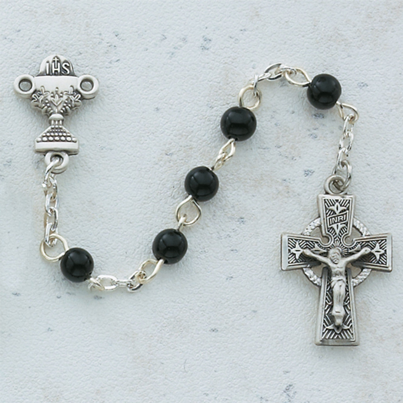 5MM BLK CELTIC COMM ROSARY
