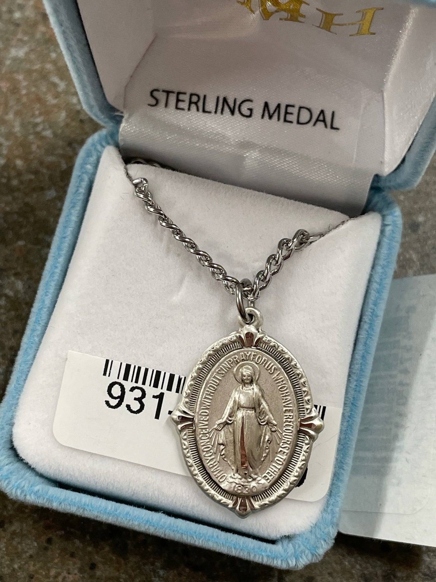 {"id":6727206076483,"title":"SS LARGE BEADED MIRACULOUS 24\"","handle":"ss-large-beaded-miraculous-24","description":"Blessed Mother Mary with rays coming out of her extended hands, crushing a serpent under her feet.\u003cbr\u003eOval shaped double sided pendant with four pronged border.\u003cbr\u003eSolid .925 sterling silver.\u003cbr\u003eMedal is die struck.\u003cbr\u003eHand polished and engraved by New England Silversmiths.\u003cbr\u003eDimensions: 1.1\" x 0.8\" (28mm x 20mm)\u003cbr\u003eWeight of medal: 3.5 Grams.\u003cbr\u003e24\" Genuine rhodium plated endless curb chain.\u003cbr\u003eMade in USA.\u003cbr\u003eDeluxe velvet gift box.","published_at":"2022-09-01T17:23:42","created_at":"2022-09-01T17:23:42","vendor":"HMH\/Regina Manufacturing","type":"MEDALS","tags":["Chain Size_24\"","Material_Sterling Silver","Type_Miraculous Medal"],"price":6400,"price_min":6400,"price_max":6400,"price_varies":false,"compare_at_price":null,"compare_at_price_min":0,"compare_at_price_max":0,"compare_at_price_varies":true,"all_variant_ids":[40161467826243],"variants":[{"id":40161467826243,"product_id":6727206076483,"product_handle":"ss-large-beaded-miraculous-24","title":"Default Title","option1":"Default Title","option2":null,"option3":null,"sku":"931-0090","requires_shipping":true,"taxable":true,"featured_image":null,"image_id":null,"available":true,"name":"SS LARGE BEADED MIRACULOUS 24\" - Default Title","options":["Default Title"],"price":6400,"weight":60,"compare_at_price":null,"inventory_quantity":1,"inventory_management":"shopify","inventory_policy":"deny","inventory_in_cart":0,"inventory_remaining":1,"incoming":false,"next_incoming_date":null,"taxable":true,"barcode":null}],"available":true,"images":["\/\/www.marytowngiftshop.com\/cdn\/shop\/files\/931-0090.jpg?v=1701986036"],"featured_image":"\/\/www.marytowngiftshop.com\/cdn\/shop\/files\/931-0090.jpg?v=1701986036","options":["Title"],"url":"\/products\/ss-large-beaded-miraculous-24"}