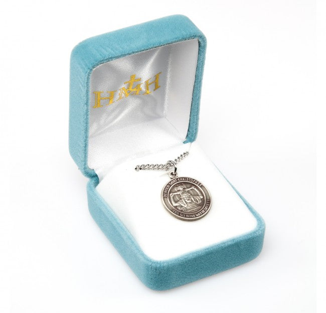 {"id":6727207878723,"title":"SS ST CHRISTOPHER ROUND 20\"","handle":"ss-st-christopher-round-20","description":"Saint Christopher round medal-pendant.\u003cbr\u003eSolid .925 sterling silver.\u003cbr\u003eDetail depicts him carrying the Child Jesus on his shoulder.\u003cbr\u003eSaint Christopher is the Patron Saint of motorists and travelers.\u003cbr\u003eMedal is die struck.\u003cbr\u003eHand polished and engraved by New England Silversmiths.\u003cbr\u003eDimensions: 0.8\" x 0.7\"(21mm x 18mm)\u003cbr\u003eWeight of medal: 3.0 Grams.\u003cbr\u003e20\" Genuine rhodium plated curb chain.\u003cbr\u003eMade in USA.\u003cbr\u003eDeluxe velvet gift box.","published_at":"2022-09-01T17:24:42","created_at":"2022-09-01T17:24:42","vendor":"HMH\/Regina Manufacturing","type":"MEDALS","tags":["Chain Size_20\"","Material_Sterling Silver","Type_Saint Medals"],"price":5950,"price_min":5950,"price_max":5950,"price_varies":false,"compare_at_price":null,"compare_at_price_min":0,"compare_at_price_max":0,"compare_at_price_varies":true,"all_variant_ids":[40161469956163],"variants":[{"id":40161469956163,"product_id":6727207878723,"product_handle":"ss-st-christopher-round-20","title":"Default Title","option1":"Default Title","option2":null,"option3":null,"sku":"945-1332","requires_shipping":true,"taxable":true,"featured_image":null,"image_id":null,"available":true,"name":"SS ST CHRISTOPHER ROUND 20\" - Default Title","options":["Default Title"],"price":5950,"weight":50,"compare_at_price":null,"inventory_quantity":2,"inventory_management":"shopify","inventory_policy":"deny","inventory_in_cart":0,"inventory_remaining":2,"incoming":false,"next_incoming_date":null,"taxable":true,"barcode":null}],"available":true,"images":["\/\/www.marytowngiftshop.com\/cdn\/shop\/files\/S1340_1.jpg?v=1746819399","\/\/www.marytowngiftshop.com\/cdn\/shop\/files\/S1340X.jpg?v=1746819423","\/\/www.marytowngiftshop.com\/cdn\/shop\/files\/S134020.jpg?v=1746819455"],"featured_image":"\/\/www.marytowngiftshop.com\/cdn\/shop\/files\/S1340_1.jpg?v=1746819399","options":["Title"],"url":"\/products\/ss-st-christopher-round-20"}